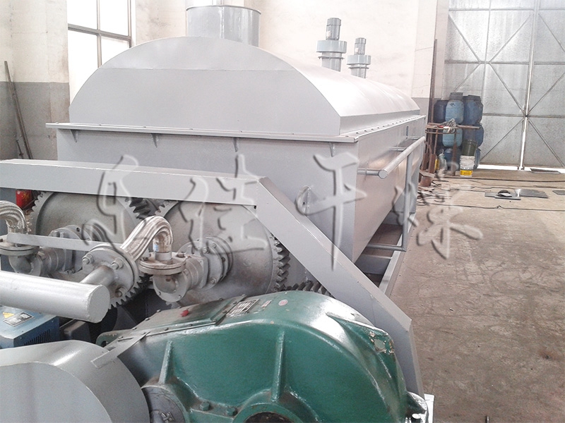 浆叶干燥机已成功地用于食品、化工、石化、染料、工业污泥等领域。设备传热、冷却、搅拌的特性使之可以完成以下单元操作:燃烧(低温)、冷却、干燥(溶剂回收)加热(融化)、反应和灭菌。搅拌浆叶同时又是传热面,使单位有效容积内传热面积增大,缩短了处理时间。楔型浆叶传热面又具有自清洁功能。压缩--膨胀搅拌功能使物料混和均匀。物料沿轴向成"活塞流"运动,在轴向区间内,物料的温度、湿度、混合度梯度很小。用导热油做热介质浆叶干燥机可完成低温燃烧工作。如:二水硫酸钙(Ca2SO4·2H2O) 燃烧转化为半水硫酸钙(Ca2SO4·1/22H2O)。碳酸氢钠(NaHCO3)经煅烧转化为纯碱(Na2HCO3)等。通入冷却介质,如水、冷却盐水等即可用来冷却。如:使用于纯碱行业的浆叶式凉碱机,取代老式的空气冷却凉碱机,节省了能源及尾气处理设备,降低了操作费用。干燥,设备主要的功能,不使用热空气,使溶剂回收、能源消耗、环境控制处于易处理的理想状态。对需回收溶剂、易燃易氧化热敏性物料尤为适应。已广泛用于精细化工、石化、染料行业。轴向区间内,温度、湿度、混合度的均匀性,使得设备可用来加热或融化,或进行一些固体物料反应。在复合肥及变性淀粉行业均已成功使用。浆叶干燥机可用来对食物和面粉进行灭菌处理。单位有效容积内大的加热面积,很快就将物料加热到灭菌温度,避免了长时间加热而改变物料品质。