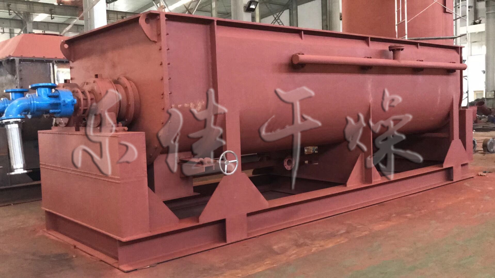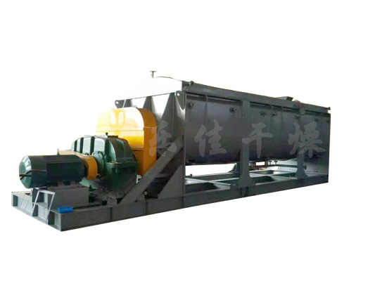 空心轴上密集排列着楔型中空浆叶,热介质经空心轴流经浆叶。单位有效容积内传热面积很大,热介质温度从-40℃到320℃,可以是水蒸汽,也可以是液体型:如热水、导热油等。间接传导加热,没有携带空气带走热量,热量均用来加热物料。热量损失仅为通过器体保温层向环境的散热。楔型浆叶传热面具有自清洁功能。物料颗粒与楔型面的相对运动产生洗刷作用,能够洗刷掉楔型面上附着物料,使运转中一直保持着清洁的传热面。浆叶干燥机的壳体为Ω型,壳体内一般安排二到四根空心搅拌轴。壳体有密封端盖与上盖,防止物料粉尘外泄而充分发挥作用。